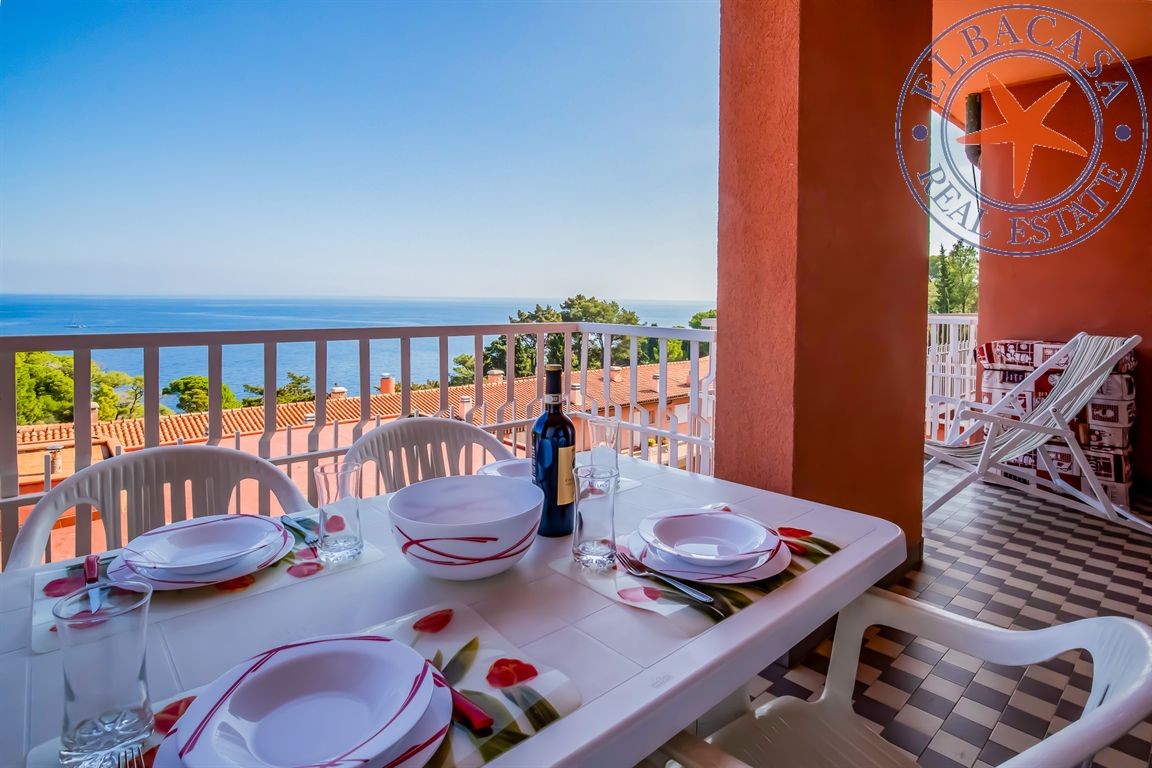 L'abitazione si distingue per le due terrazze, una con vista panoramica sul mare cristallino e l'altra che si affaccia sul tranquillo retro del condominio. Un rifugio ideale per chi cerca il connubio perfetto tra comodità e serenità. L'ambiente lussuoso e l'immersione nella natura fanno di questa proprietà un'opzione unica nel suo genere.